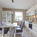 Ihre Ferienwohnung ist mit einer modernen & hochwertigen Küche mit hochwertigen Neff Geräten wie Umluft-Backofen, Ceranfeld, Kühlschrank, Spülmaschine & Mikrowelle ausgestattet. Weiterhin sind eine Philips Silverline Cafe Gourmet Kaffeemaschine & Philips Silverline Senseo inklusive Kaffee Pads, Philips Silverline Toaster, ein Handmixer, Philips Wasserkocher, ein Eierkocher (6er) vorhanden, Tafelgeschirr, Bestecke uvm. Gemütliche Sitzgruppe mit 4 Stühlen und Tisch. Ihre Küche verfügt über eine elektronisch steuerbare Fußbodenheizung.
