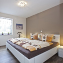 Die Ferienwohnung hat ein Schlafzimmer mit einem großen Doppelbett (200cm x 200cm). Ihr Schlafraum verfügt über eine elektronisch steuerbare Fußbodenheizung. Zwei Nachttische mit zwei Leseleuchten & ein Radiowecker und einen Kleiderschrank mit Holzkleiderbügeln, ein moderner 32 Zoll LED Flachbildschirm mit SAT-TV verführt Sie zum „Einschlafen“. Ihre Betten sind selbstverständlich komplett bezogen & jeweils zwei Hand & Badetücher pro Person sind kostenfrei inklusive. Ihr Schlafzimmerfenster verfügt über ein Fliegenschutzgitterrollo.